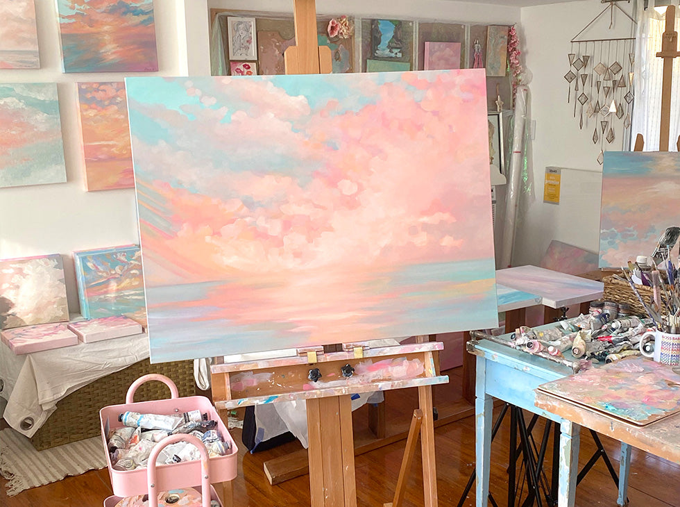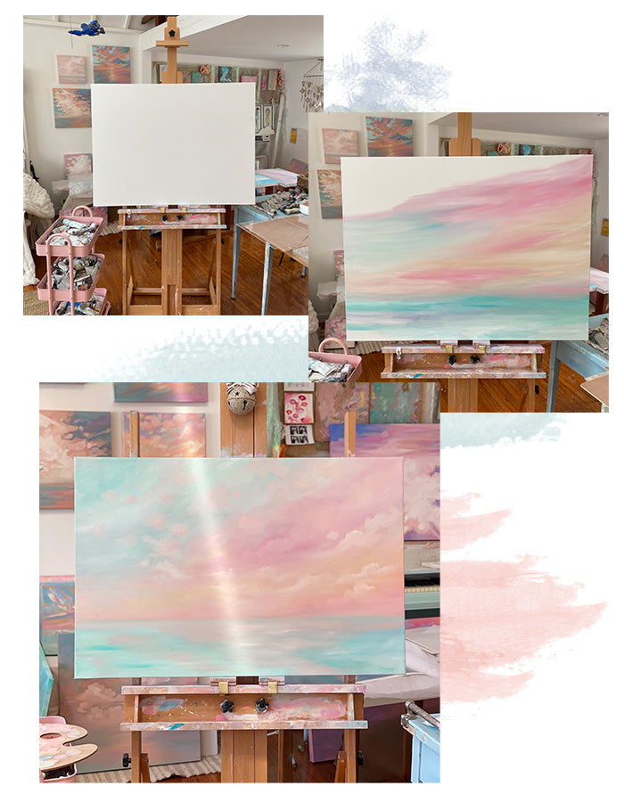 My goal with commissions is to fuse your beautiful vision, favorite colors and personal inspiration with my dreamy style to create a perfect addition to your space. I have worked with both collectors and first time art buyers, so rest assured this is a fun and flexible process with the only goal being your happiness!